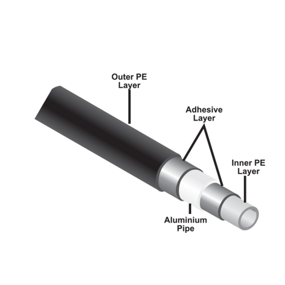 KITEC is an aluminum and polyethylene composite that combines the b features of both materials to form a pipe that is light, strong and does not support corrosion. By combining the two materials along with adhesive layers, KITEC pipe avoids the unaccepted thermal expansion and deformation of plastic pipe. At the same time it retains the flexibility, frost resistance and ease of use associated with plastic.